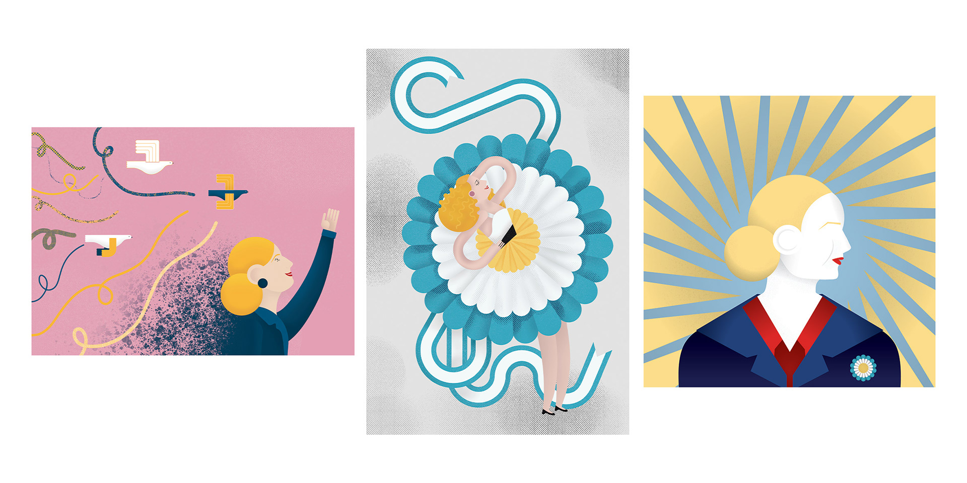Para la tienda del Museo Evita desarrollé una serie de retratos ilustrados de Eva Perón pensados especialmente para su aplicación en productos editoriales y de merchandising: agendas, pósters, stickers y piezas gráficas.